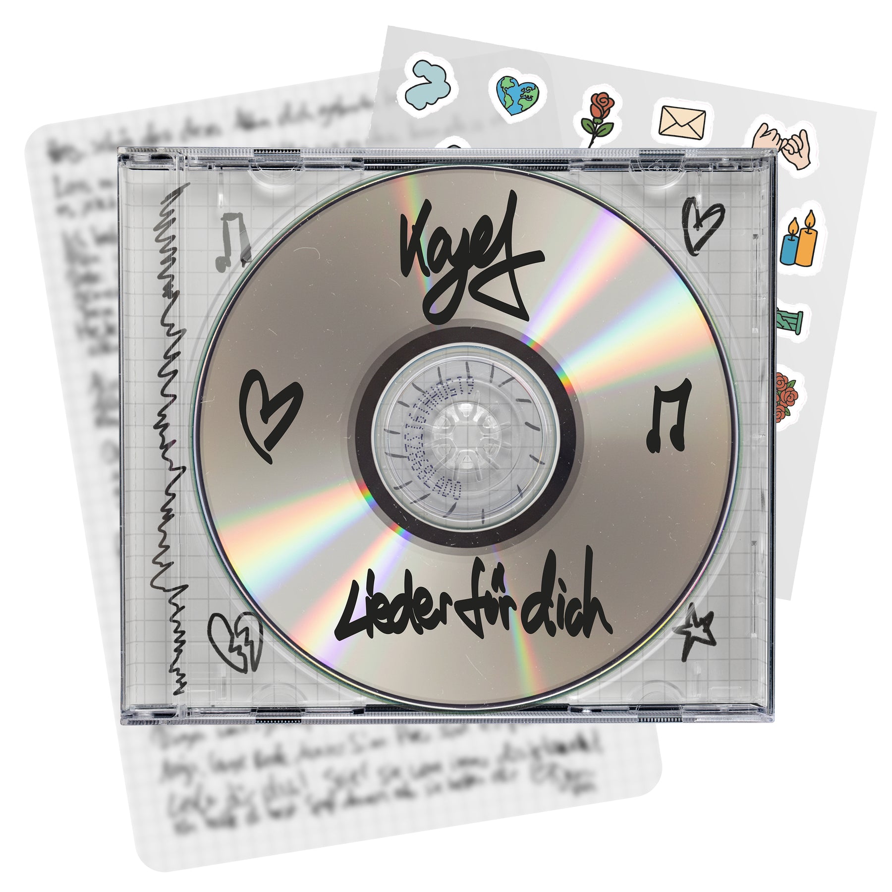 Jetzt vorbestellen! Das neue Album "LIEDER FÜR DICH" als Album CD inklusive Stickerbogen, der die Lyrics aufgreift, mit dem du dein ganz individuelles Album Design basteln kannst. Dazu gibt es außerdem einen persönlichen Brief von KAYEF.